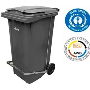 Con una capacidad de 360 litros, este contenedor es ideal para manejar grandes volúmenes de residuos, facilitando su recolección y disposición. El pedal integrado permite una apertura manos libres, mejorando la higiene al evitar el contacto directo con la tapa y facilitando su uso en áreas de alto tráfico.