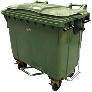Con una capacidad de 770 litros, este contenedor es ideal para manejar grandes volúmenes de residuos, facilitando su recolección y disposición. El pedal integrado permite una apertura manos libres, mejorando la higiene al evitar el contacto directo con la tapa y facilitando su uso en áreas de alto tráfico.