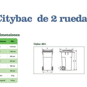 Este contenedor DUST de 360 litros es ideal para la gestión eficiente de grandes volúmenes de residuos. Está fabricado mediante la técnica de inyección en molde monobloque, lo que asegura una estructura robusta y sin uniones, fabricado en polietileno de alta densidad estabilizado contra rayos UV para resistir las condiciones exteriores adversas. Su diseño cuenta con dos ruedas de goma y un eje de acero galvanizado, lo que facilita su movilidad y manejo. Además, su tapa está diseñada para prevenir la acumulación de residuos y agua, asegurando un cierre seguro y fácil limpieza.