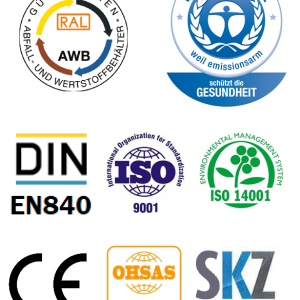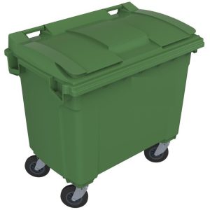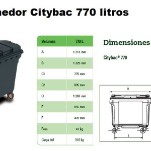 Este contenedor de 770 litros de la marca DUST está fabricado en Francia utilizando polietileno de alta densidad con la técnica de transformación por inyección, lo que permite su fabricación en una sola pieza sin necesidad de añadir partes remachadas. Este contenedor cuenta con características mecánicas de alto nivel, como seis asas de manipulación integradas y dotadas de estrías para mejorar el agarre y apilamiento. Los accesorios metálicos están protegidos contra la corrosión mediante un proceso de galvanizado en caliente. Además, sus cuatro ruedas con banda de rodamiento de caucho y freno de seguridad hacen que sea muy fácil de desplazar y seguro de manejar.